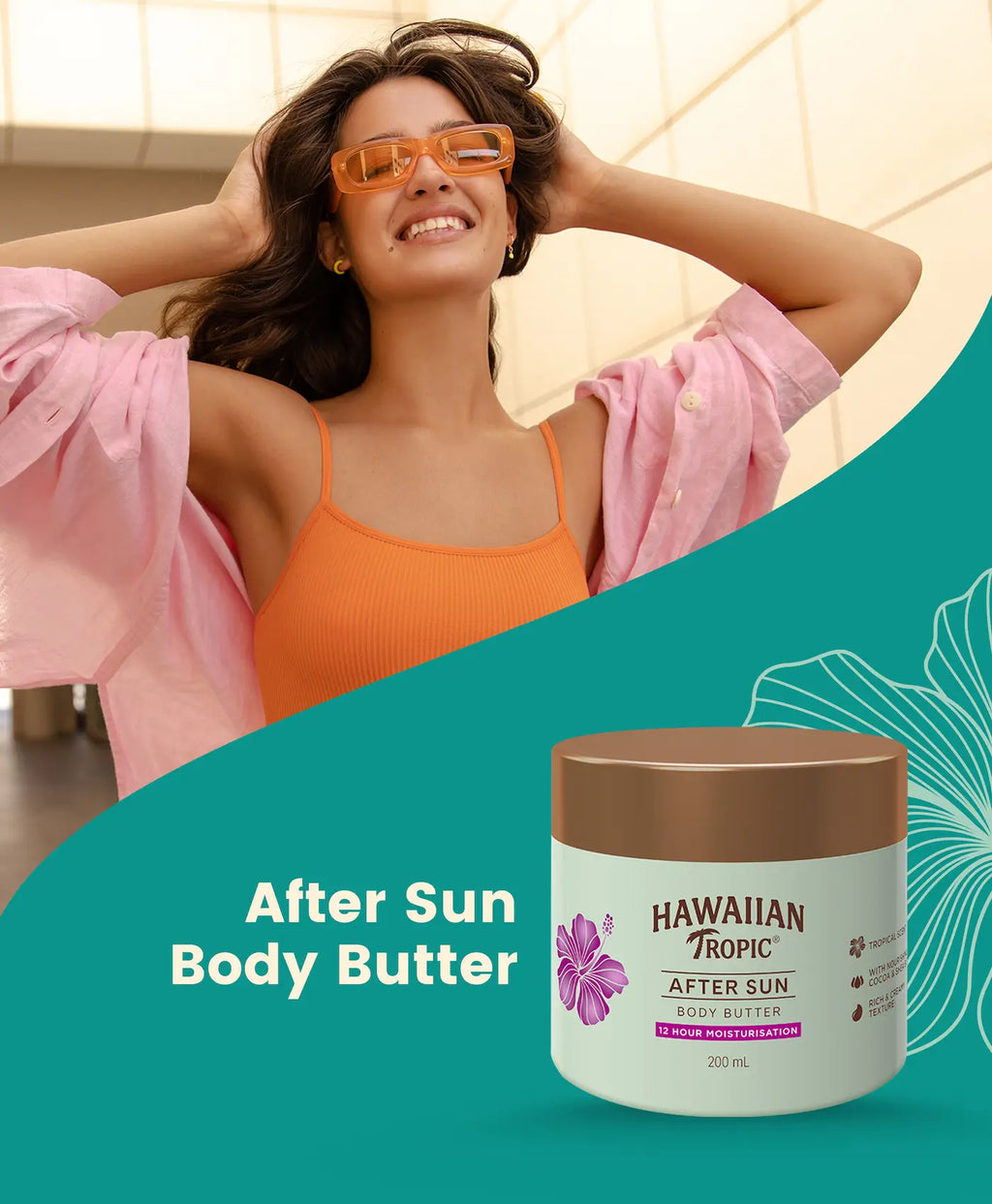 Pamper your skin with Hawaiian Tropic® After Sun Body Butter. Our intensely hydrating formula provides your skin with 12 hour moisturisation. The nourishing ingredients of Cocoa & Shea Butter combined in our rich and creamy texture are enhanced with our signature tropical scent.